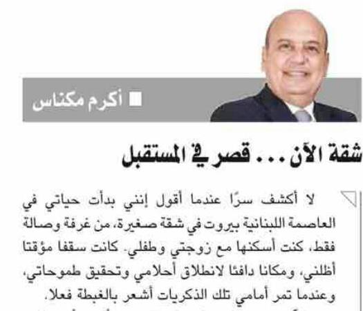 لا أكشف سراً عندما أقول أنني بدأت حياتي في العاصمة اللبنانية بيروت في شقة صغيرة، من غرفة وصالة فقط، كنت أسكنها مع زوجتي وطفلي. كانت سقفا مؤقتا أظلني، ومكانا دافئا لانطلاق أحلامي وتحقيق طموحاتي، وعندما تمر أمامي تلك الذكريات أشعر بالغبطة فعلا.