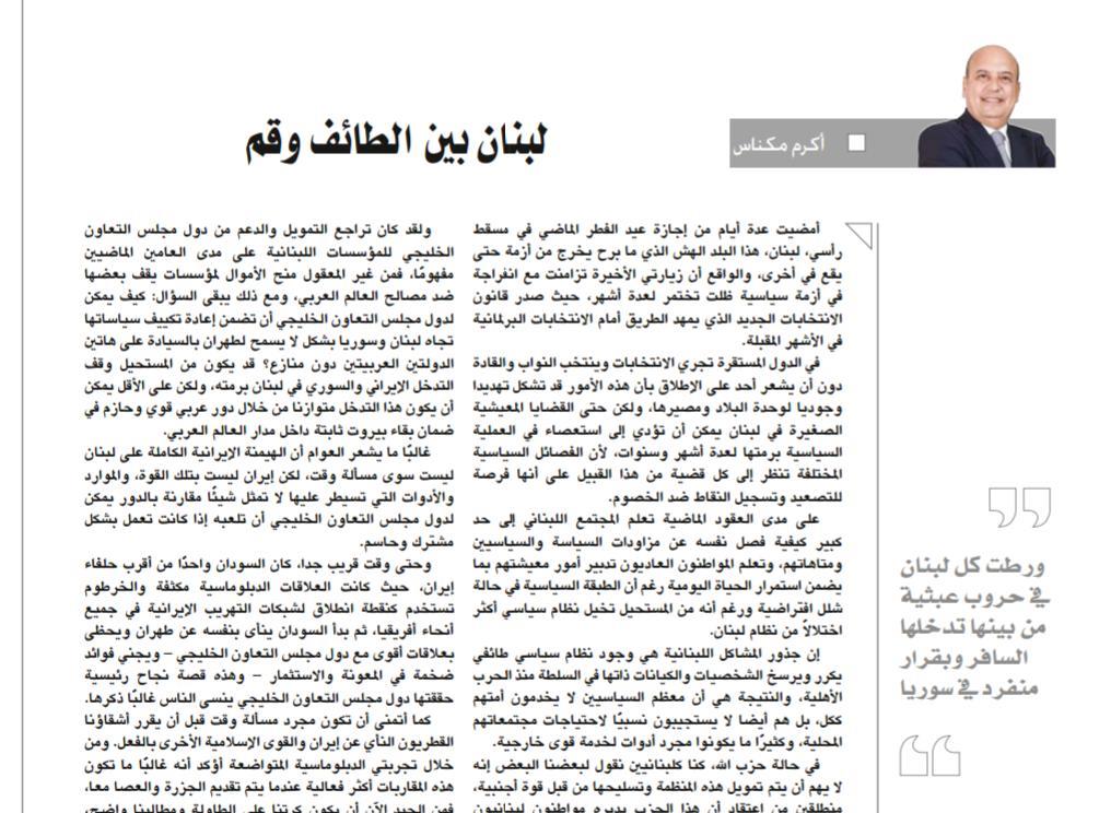 ولقد كان تراجع التمويل والدعم من دول مجلس التعاون الخليجي للمؤسسات اللبنانية على مدى العامين الماضيين مفهوما، فمن غير المعقول منح الأموال لمؤسسات يقف بعضها ضد مصالح العالم العربي، ومع ذلك يبقى السؤال: كيف يمكن لدول مجلس التعاون الخليجي أن تضمن إعادة تكييف سياساتها تجاه لبنان وسوريا بشكل لا يسمح لطهران بالسيادة على هاتين الدولتين العربيتين دون منازع؟. قد يكون من المستحيل وقف التدخل الإيراني والسوري في لبنان برمته، ولكن على الأقل يمكن أن يكون هذا التدخل متوازنا من خلال دور عربي قوي وحازم في ضمان بقاء بيروت ثابتة داخل مدار العالم العربي.
